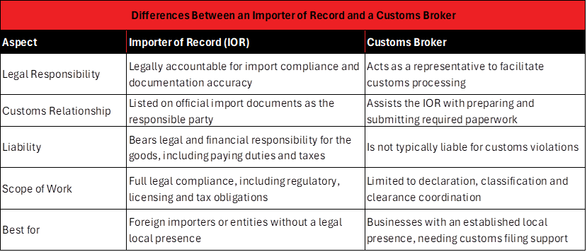 Importers often struggle to decide whether to engage an IOR or a customs broker when delegating import responsibilities.